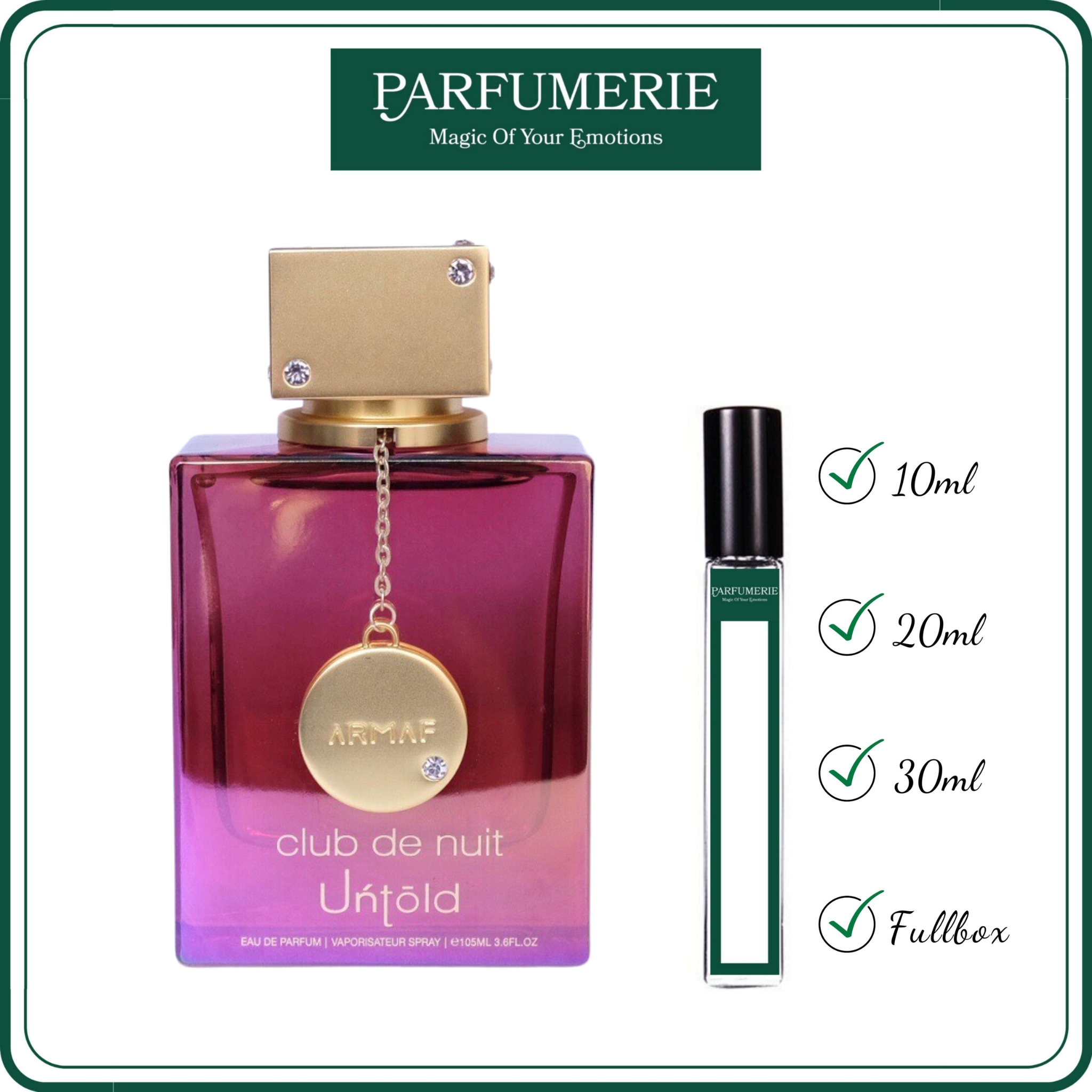 Nước hoa chiết Armaf Club De Nuit Untold chính hãng từ Parfumerie được chiết ra từ chai gốc chính hãng bằng dụng cụ chuyên dụng nên đảm bảo vẫn chuẩn mùi và giữ được độ lưu hương như chính nguyên bản. Vì vậy, bạn đừng quá lo lắng việc nên mua nước hoa chiết hay nước hoa nguyên hộp (Fullbox) chai gốc chính hãng nhé, tất cả đều nằm ở sở thích, nhu cầu và ngân sách chi tiêu dành cho nước hoa của bạn mà thôi.