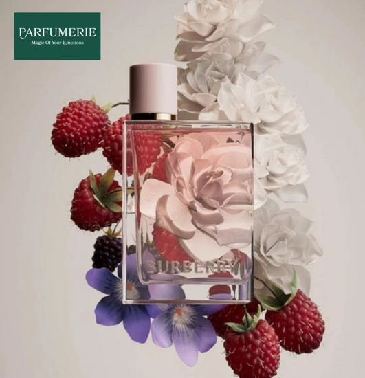 Burberry Her khởi đầu trong sự tươi tắn đầy thanh lịch của phúc bồn tử, dâu tây và cherry thơm mát. Sự góp mặt của rất nhiều loại tinh dầu trái cây nổi tiếng đã mang tới cảm giác trẻ trung, cực kỳ hấp dẫn cho tầng hương đầu. Sang tới những nốt hương trung tâm, các cô nàng sẽ lập tức chìm đắm trong cảm xúc nồng nàn, nữ tính với nhài thơm và hoa violet quyến rũ. Và cuối cùng, ẩn dưới lớp áo tinh nghịch, năng nổ thường ngày là nét e ấp, ấm áp phần nào được thể hiện qua Hổ phách và Gỗ sồi, hương thơm đầy lưu luyến không rời trên làn da của bạn.