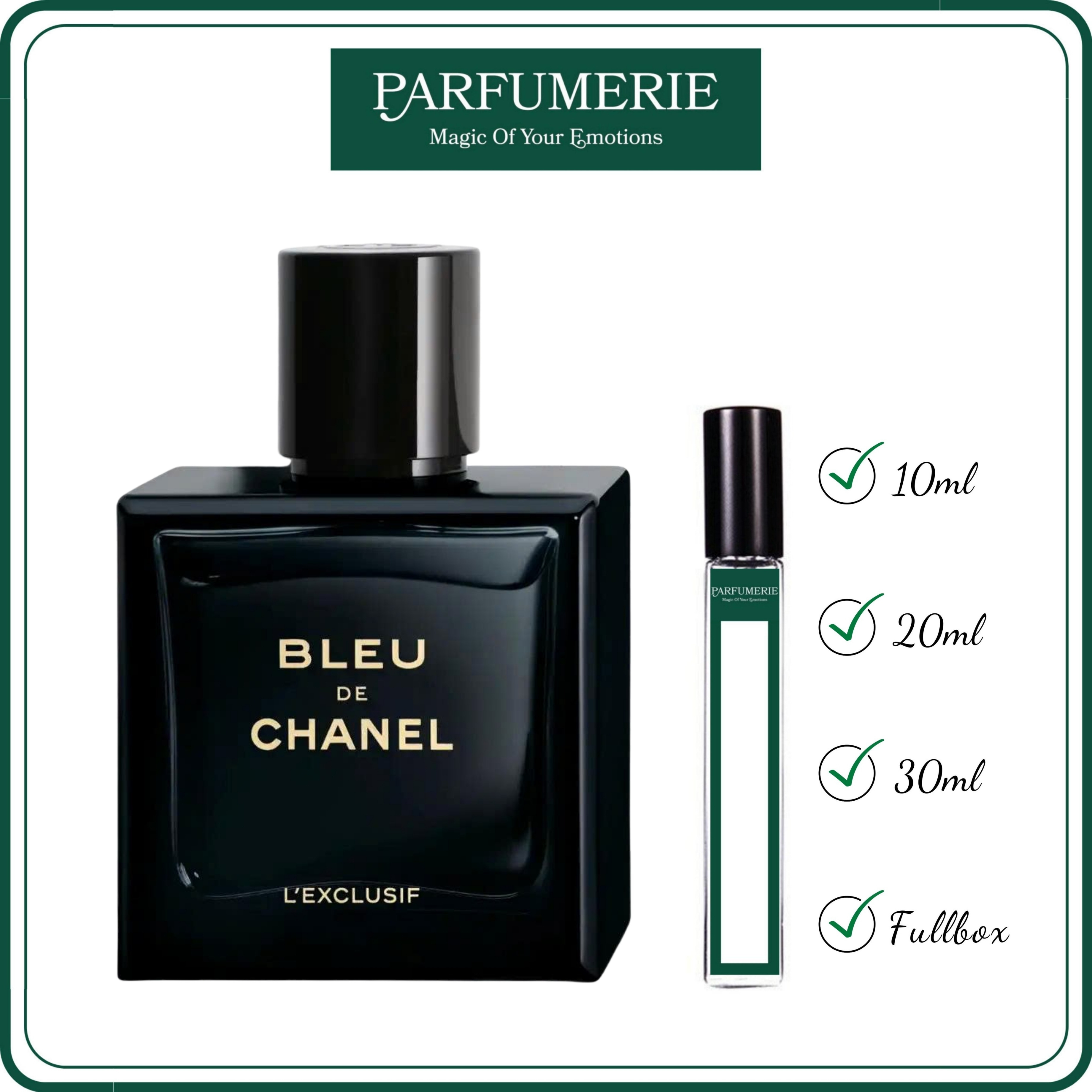 Nước hoa Chanel Bleu de Chanel L’Exclusif Parfum chính hãng từ Parfumerie được chiết ra từ chai gốc chính hãng bằng dụng cụ chuyên dụng nên đảm bảo vẫn chuẩn mùi và giữ được độ lưu hương như chính nguyên bản. Vì vậy, bạn đừng quá lo lắng việc nên mua nước hoa chiết hay nước hoa nguyên hộp (Fullbox) chai gốc chính hãng nhé, tất cả đều nằm ở sở thích, nhu cầu và ngân sách chi tiêu dành cho nước hoa của bạn mà thôi.