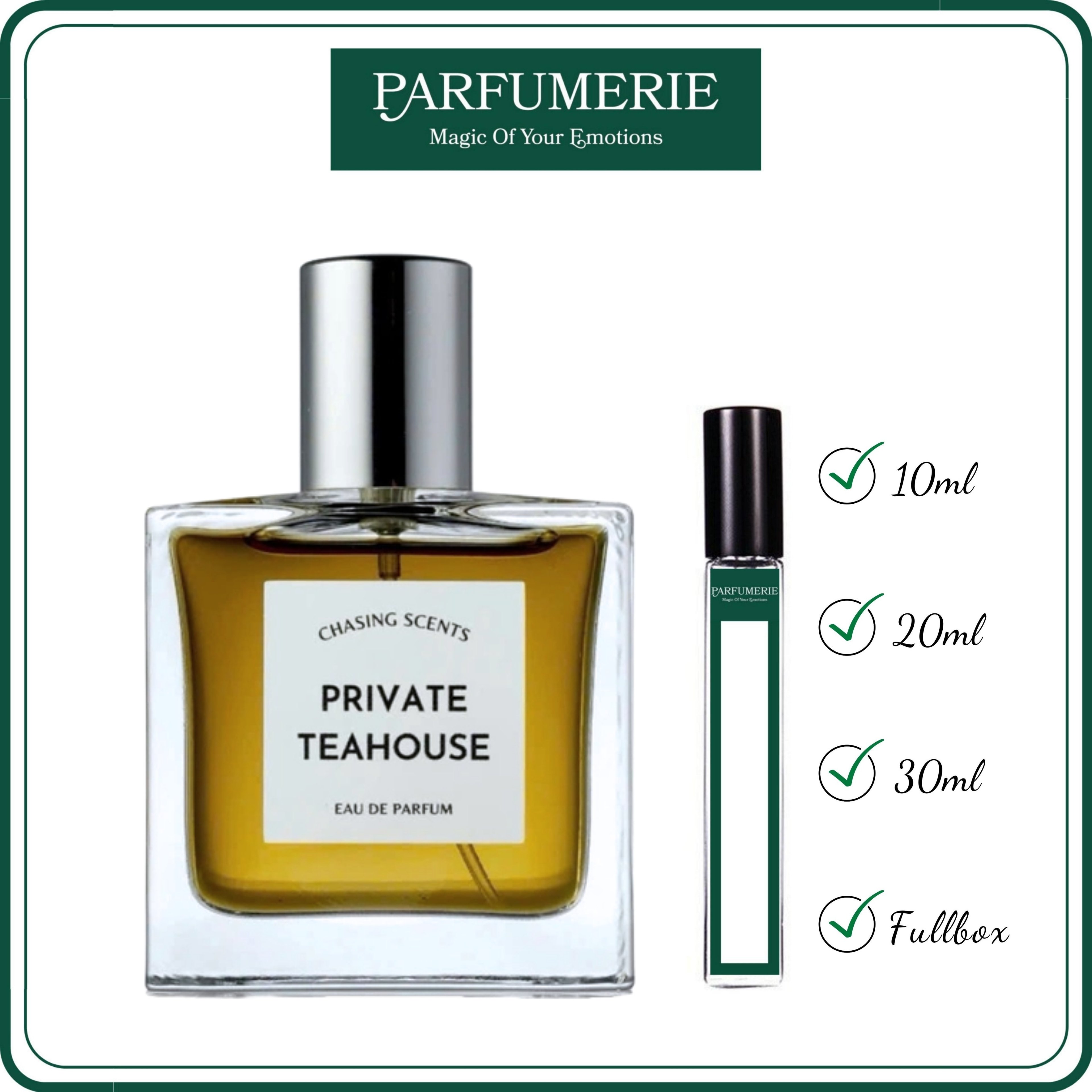 Trong nhịp sống hối hả, đôi khi chúng ta khao khát tìm về một không gian yên tĩnh, nơi mọi ồn ào khép lại sau cánh cửa gỗ, chỉ còn lại hơi ấm của trà, làn khói lững lờ và câu chuyện nhẹ nhàng đang chờ được kể. Đó chính là cảm hứng để thương hiệu Chasing Scents – nhà nước hoa thủ công đến từ Úc – tạo nên Private Teahouse, một mùi hương dành cho những tâm hồn yêu sự tinh tế và trân trọng khoảnh khắc riêng tư. Private Teahouse, ra mắt vào ngày 1 tháng 7 năm 2024, là tác phẩm thứ 5 trong bộ sưu tập của thương hiệu, và cũng là lời mời bước vào “phòng trà riêng” – nơi mùi hương kể câu chuyện bằng ngôn ngữ khứu giác.