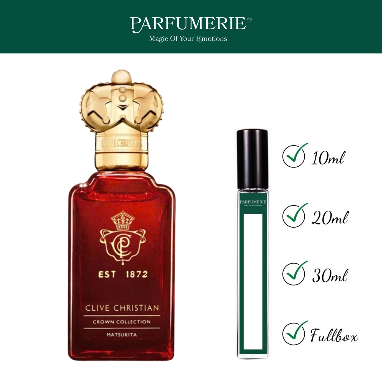 Chai nước hoa Matsukita là một trong những di sản quý giá của Crown Perfumery, được sáng tạo lần đầu vào năm 1892. Khi hồi sinh, Clive Christian dựa trên bản điều chế được của Crown Perfumery để tái hiện lại mùi hương nhằm giữ nguyên tinh thần cổ điển nhưng được điều chỉnh để phù hợp với hiện đại.