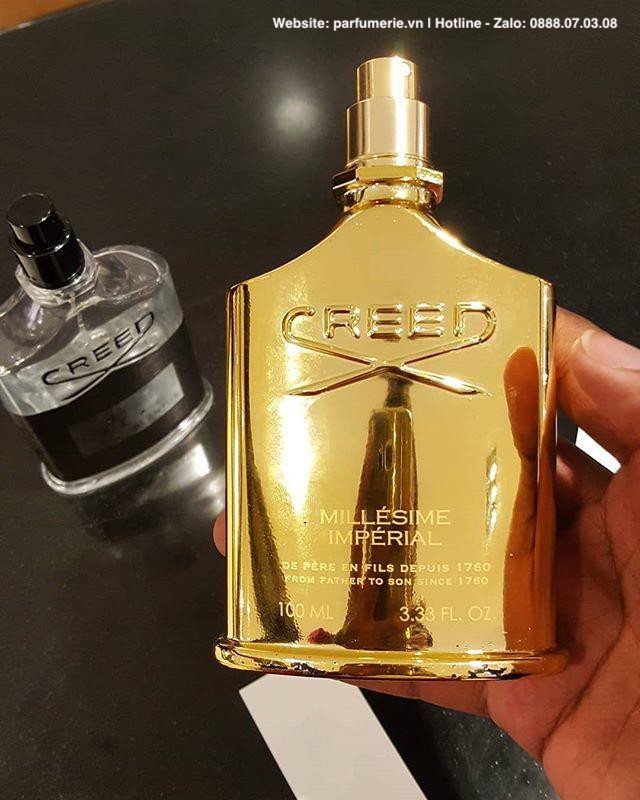 Dòng nước hoa unisex Millesime Imperial của thương hiệu Creed được cho ra mắt vào năm 1995 dưới sự sáng tạo của Olivier Creed 6th Generation. Chai nước hoa Millesime Imperial mang đến vẻ ngoài thiết kế được phủ kín bằng lớp mạ vàng óng ánh tượng trưng cho sự hoàng gia đầy quyền uy và giàu có, khiến cho giới mộ điệu nước hoa không ngần ngại mà chi tiền cho chai nước hoa đặc biệt này. Millesime Imperial khá linh hoạt bạn có thể sử dụng như một chai nước hoa dành cho nam hoặc nước hoa dành cho nữ cho các hoạt động thường ngày đều có thể gây những ấn tượng đặc biệt với mọi người xung quanh.