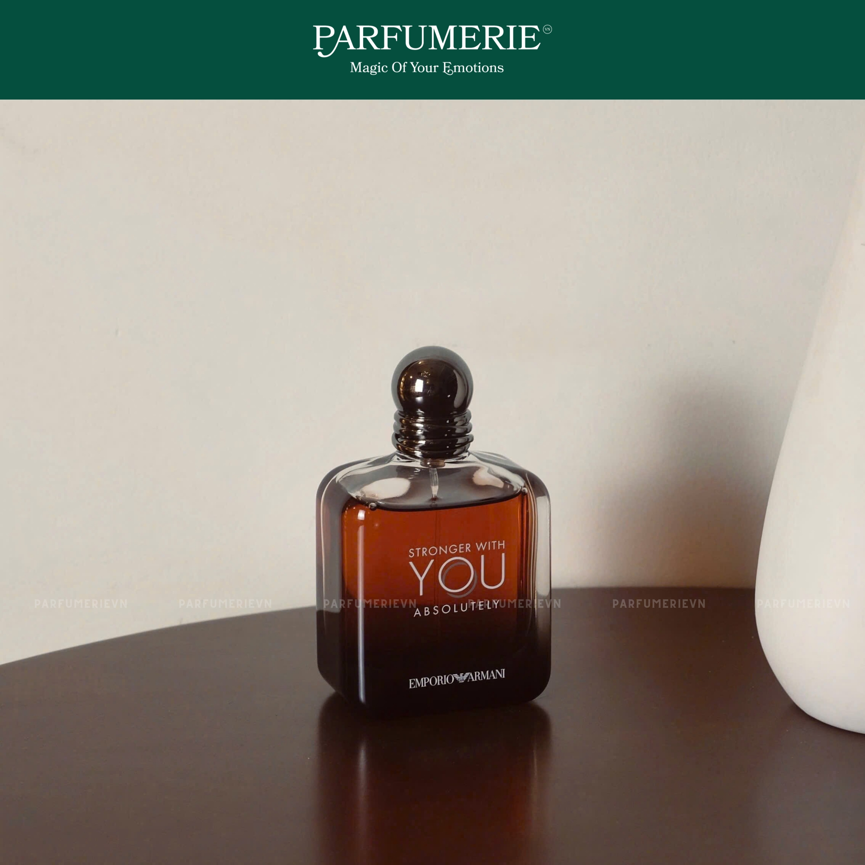 Emporio Armani Stronger With You Absolutely ra mắt năm 2021, được nhà chế tác Cécile Matton tạo nên như một phiên bản “tuyệt đối hóa” cảm xúc tình yêu trong bộ sưu tập. Nước hoa nam Stronger With You Absolutely Armani một mùi hương ấm áp, say mê và quyến rũ, lý tưởng cho những khoảnh khắc thân mật trong mùa lạnh.