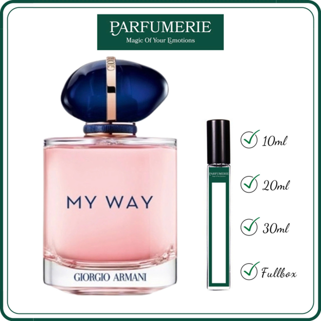 Nước hoa mẫu thử Giorgio Armani My Way EDP chính hãng từ Parfumerie được xử lý từ chai gốc chính hãng bằng dụng cụ chuyên dụng nên đảm bảo vẫn chuẩn mùi và giữ được độ lưu hương như chính nguyên bản. Vì vậy, bạn đừng quá lo lắng việc nên mua nước hoa mãu thử hay nước hoa nguyên hộp (Fullbox) chai gốc chính hãng nhé, tất cả đều nằm ở sở thích, nhu cầu và ngân sách chi tiêu dành cho nước hoa của bạn mà thôi.