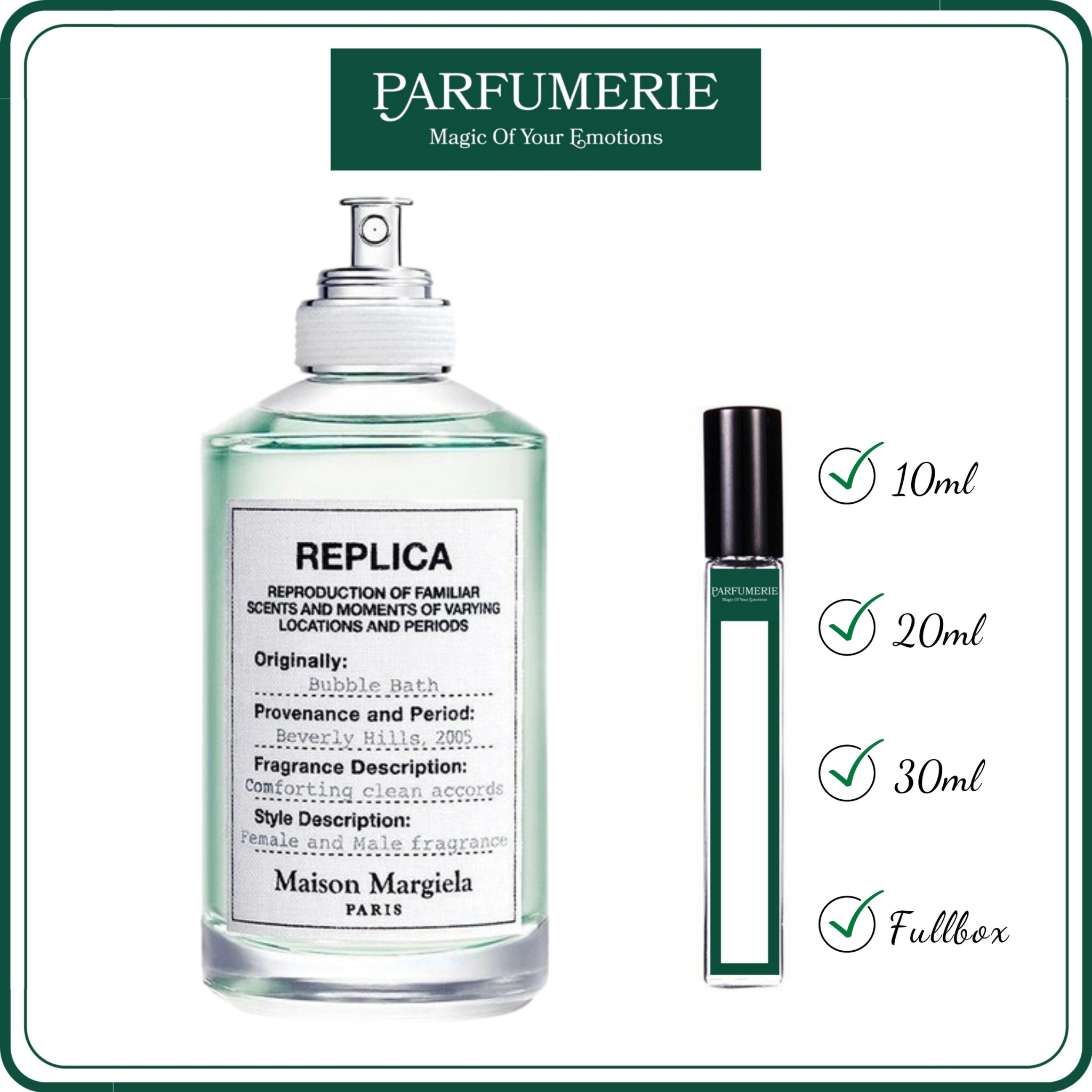 Nước hoa chiết Replica Bubble Bath chính hãng từ Parfumerie được chiết ra từ chai gốc chính hãng bằng dụng cụ chuyên dụng nên đảm bảo vẫn chuẩn mùi và giữ được độ lưu hương như chính nguyên bản. Vì vậy, bạn đừng quá lo lắng việc nên mua nước hoa chiết hay nước hoa nguyên hộp (Fullbox) chai gốc chính hãng nhé, tất cả đều nằm ở sở thích, nhu cầu và ngân sách chi tiêu dành cho nước hoa của bạn mà thôi.