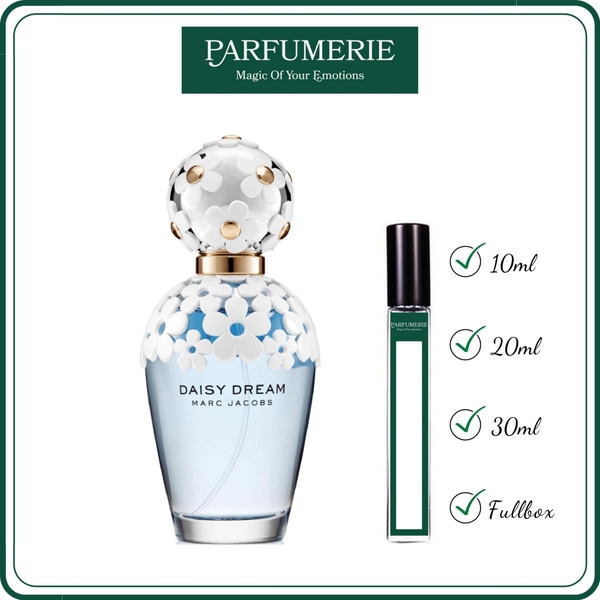 Nước hoa chiết Marc Jacobs Daisy Dream chính hãng từ Parfumerie được chiết ra từ chai gốc chính hãng bằng dụng cụ chuyên dụng nên đảm bảo vẫn chuẩn mùi và giữ được độ lưu hương như chính nguyên bản. Vì vậy, bạn đừng quá lo lắng việc nên mua nước hoa chiết hay nước hoa nguyên hộp (Fullbox) chai gốc chính hãng nhé, tất cả đều nằm ở sở thích, nhu cầu và ngân sách chi tiêu dành cho nước hoa của bạn mà thôi.