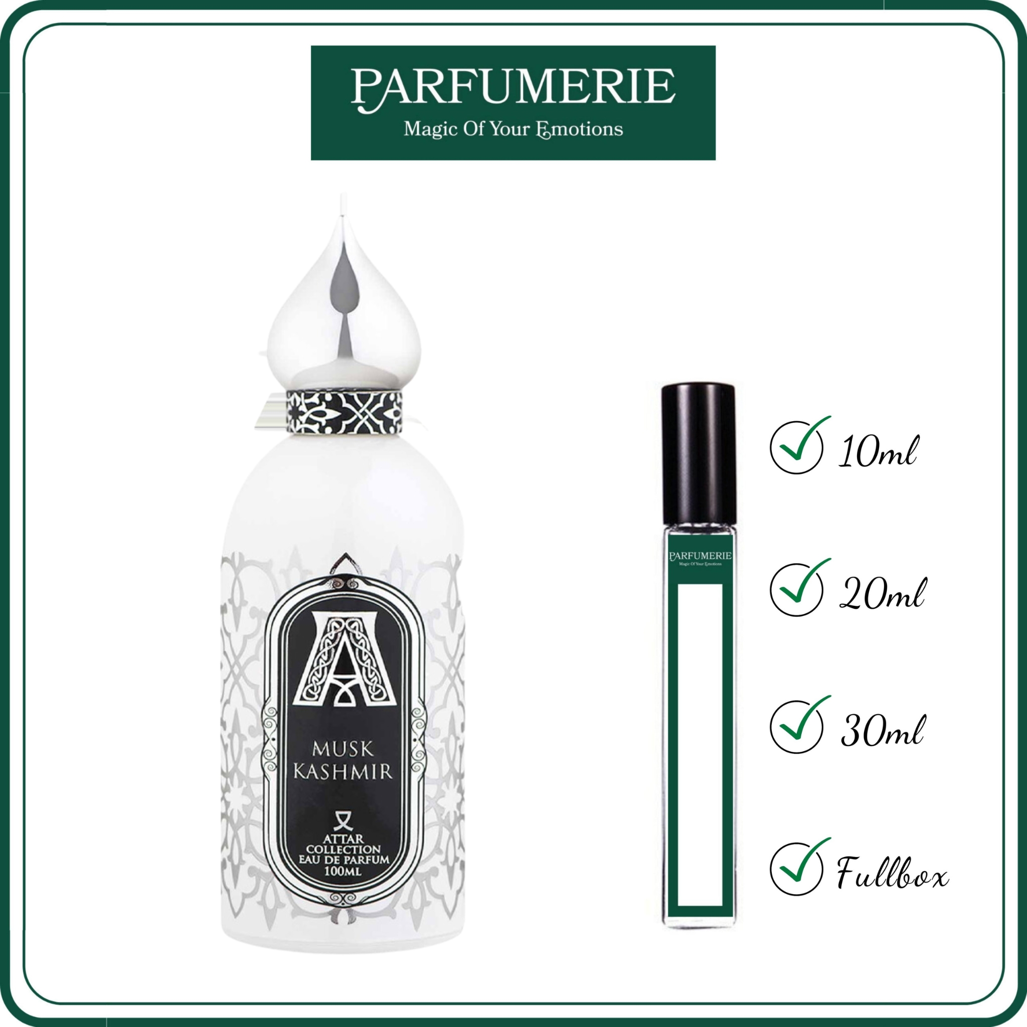 Nước hoa chiết Musk Kashmir chính hãng từ Parfumerie được chiết ra từ chai gốc chính hãng bằng dụng cụ chuyên dụng nên đảm bảo vẫn chuẩn mùi và giữ được độ lưu hương như chính nguyên bản. Vì vậy, bạn đừng quá lo lắng việc nên mua nước hoa chiết hay nước hoa nguyên hộp (Fullbox) chai gốc chính hãng nhé, tất cả đều nằm ở sở thích, nhu cầu và ngân sách chi tiêu dành cho nước hoa của bạn mà thôi.