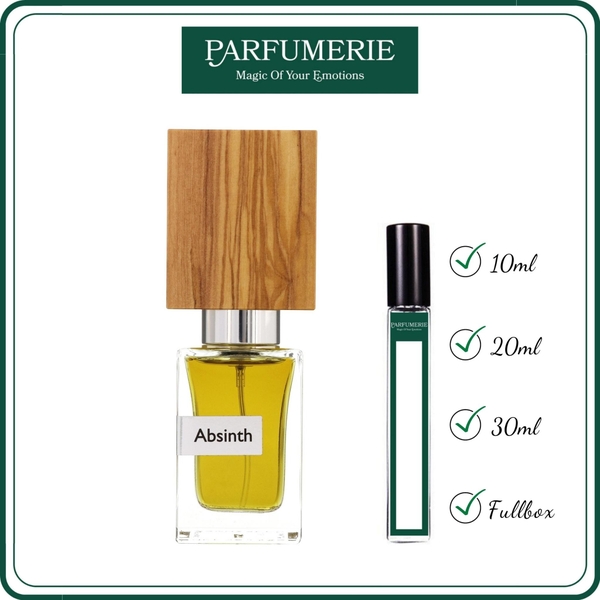 Nước hoa chiết Nasomatto Absinth chính hãng từ Parfumerie được chiết từ chai gốc chính hãng vẫn đảm bảo chuẩn mùi và giữ được độ lưu hương như chính nguyên bản. Chai nước hoa chiết dạng xịt có thiết kế đơn giản bằng thuỷ tinh trong suốt, vỏ chai dày thể hiện sự chắc chắn, nắp chai màu bạc hoặc màu đen làm tăng sự hài hoà và tinh tế của tổng thể chai nước hoa.