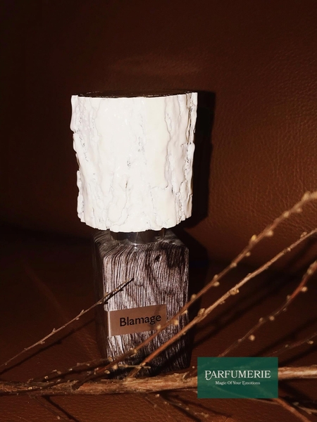 Nasomatto Blamage Extrait De Parfum là một mùi chủ đạo của gỗ và da thuộc, nghe đã thấy nam tính và mạnh mẽ rồi tuy nhiên thực tế mùi hương này lại không quá nam tính như vậy. Mở đầu của Blamage là mùi của hương hoa trắng và Aldehydes. Hoa trắng ở đây là của vài loài hoa nhưng rõ nhất là hoa nhài. Bên cạnh đó, ta sẽ thấy có chút mùi gỗ có phần hơi khói khói và da thuộc nhẹ nhàng.