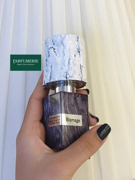 Blamage là từ tiếng Đức mang nghĩa là “lỗi lầm, sai lầm”, ngụ ý nói về sự nhầm lẫn trong lúc chọn nguyên liệu khi tạo ra mùi hương này của Alessandro. Nước hoa Nasomatto Blamage đầy rẫy sự ma mị và lôi cuốn mà tính đến thời điểm này, chưa có hương Gỗ nào ” qua mặt ” được Blamage.