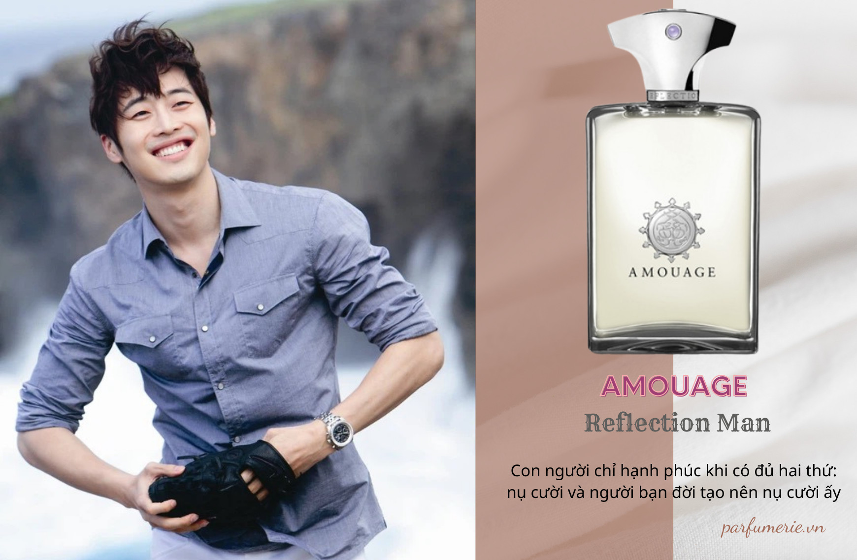 Nước hoa nam Reflection Man của nhà Amouage với hương nhài ươm mầm trên nền gỗ, sạch sẽ, gọn gàng, như một anh chàng bảnh bao và cực kỳ sành điệu.